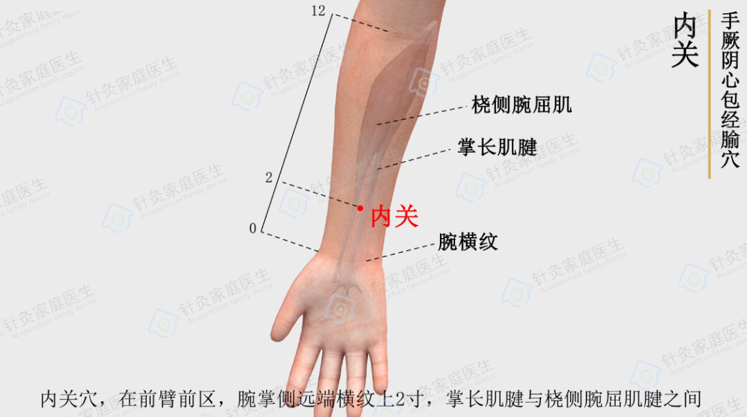 内关穴属于手阙阴心包经,日常按摩对心脏很好。